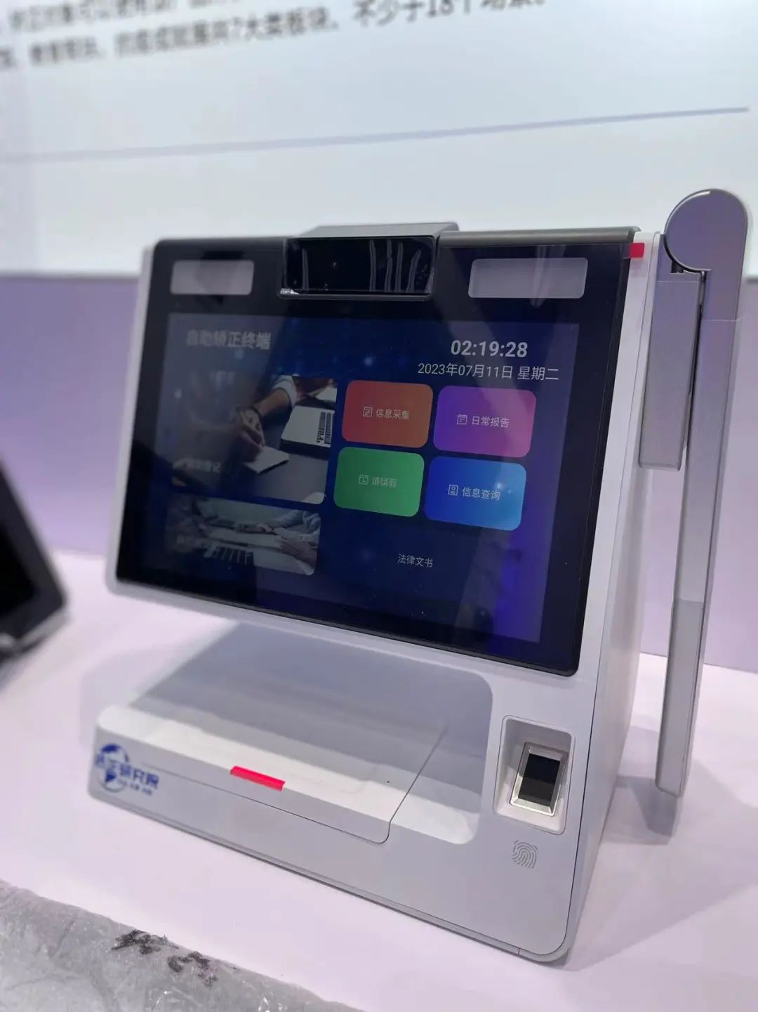 社区矫正自助终端可实现人证对比、信息采集、指纹识别、身份证读取、报到登记、签到签退、日常报告、社矫活动时长统计、法律文书打印扫描等功能,后台可与智慧矫正一体化平台对接。