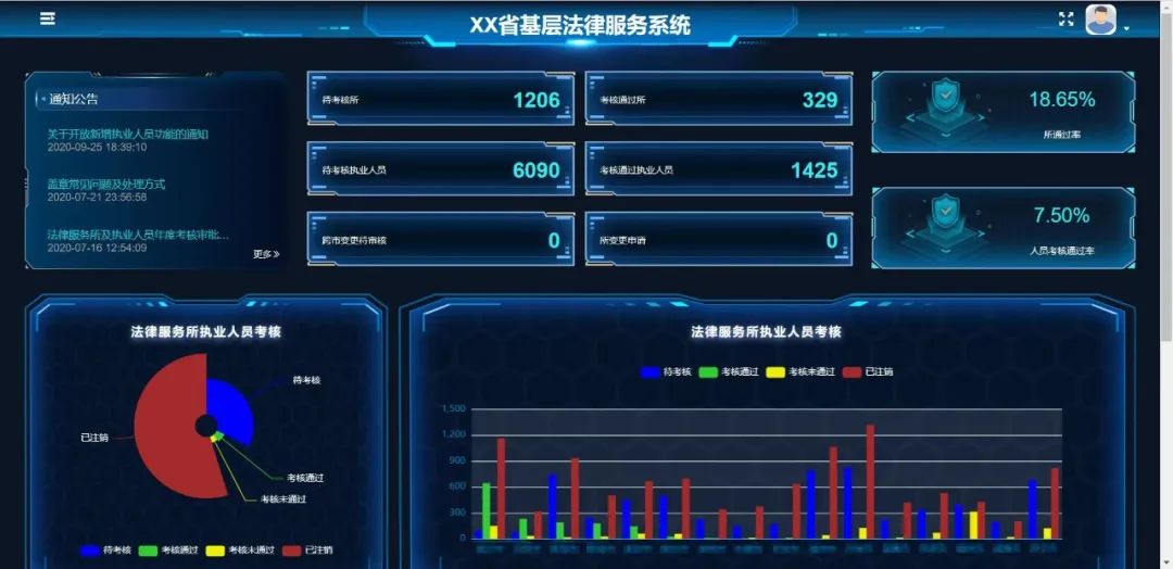 基层法律服务系统主要实现对全省法律服务所及法律服务工作者相关业务的管理,系统主要功能包括法律服务所及法律服务工作者年度考核管理、制证管理、变更管理、注销管理、登记核准管理、职业资格管理、实习人员管理、辅助人员管理、党建管理、诚信管理、案件管理、教育培训、协会管理等。